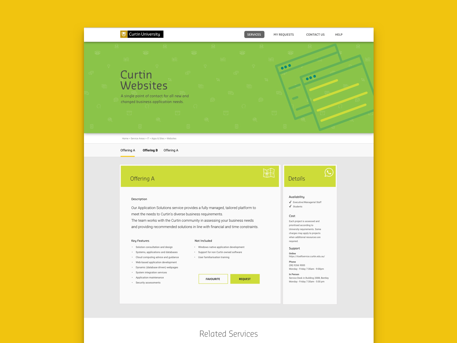 IT Service Catalogue Item Details Template Page built from reusable design system components